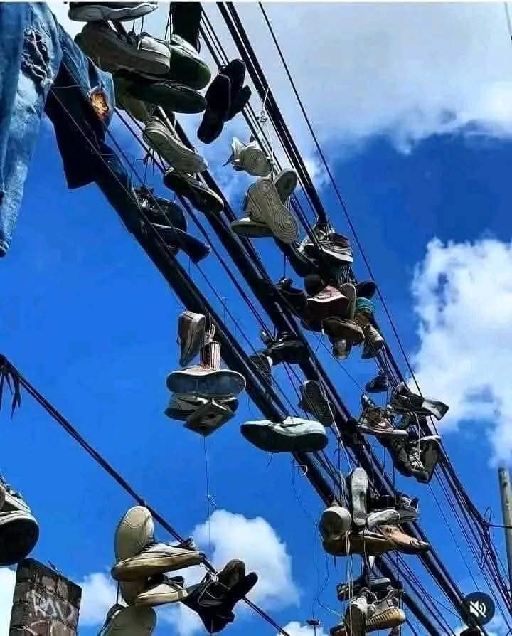 The act of hanging shoes on overhead cables, known as “shoefiti,” originated in the United States and spread globally, carrying various meanings. It often signifies a drug sales point or marks gang territory . In some areas, it can also be a memorial to someone who died nearby or a celebration of a sports victory